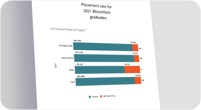20 Job Placement Rate Results 21 Job Placement Rate by Program 20 Of 668 learners with an Actual Graduation Date in 2021 and who were Job Seeking, 599 received a job offer as of the reporting date 21 The addressable population for job placement rate calculations was 668 learners.