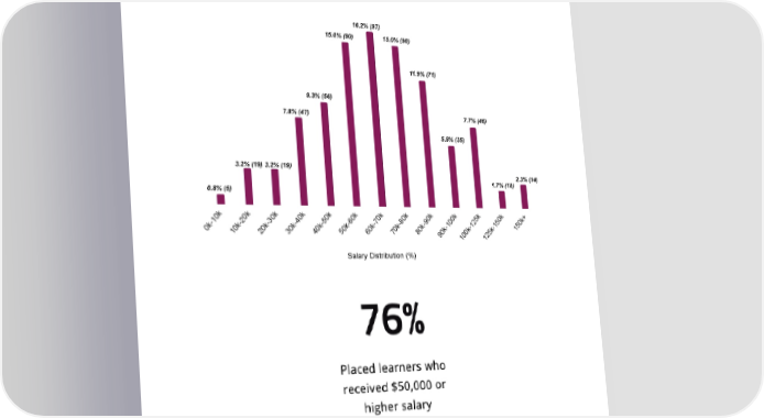 36 Salary Distribution of annualized salaries among Placed Learners Any offers reported in international currencies have been converted to U.S. dollars based on the market exchange rate at the time the offer was reported. 37 Salary Distribution for all Placed Learners 36 Based on the first recorded offer of all Placed Learners with an Actual Graduation Date in 2021 37 Of 599 Placed Learners, 76% received $50,000 or higher first Recorded Offer salary